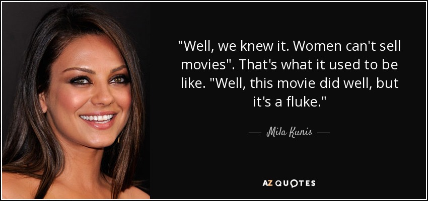 "Well, we knew it. Women can't sell movies". That's what it used to be like. "Well, this movie did well, but it's a fluke."