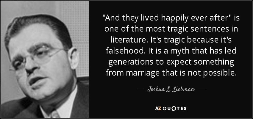 "And they lived happily ever after" is one of the most tragic sentences in literature. It's tragic because it's falsehood. It is a myth that has led generations to expect something from marriage that is not possible.