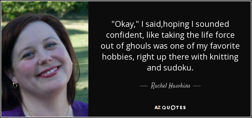 "Okay," I said,hoping I sounded confident, like taking the life force out of ghouls was one of my favorite hobbies, right up there with knitting and sudoku.