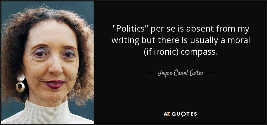 "Politics" per se is absent from my writing but there is usually a moral (if ironic) compass.