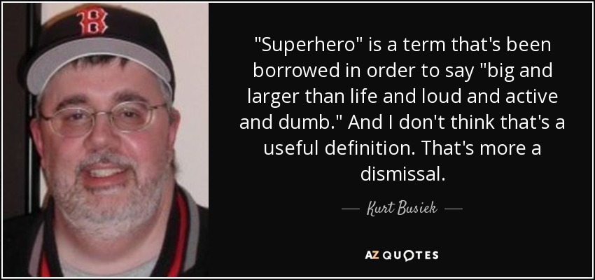 "Superhero" is a term that's been borrowed in order to say "big and larger than life and loud and active and dumb." And I don't think that's a useful definition. That's more a dismissal.