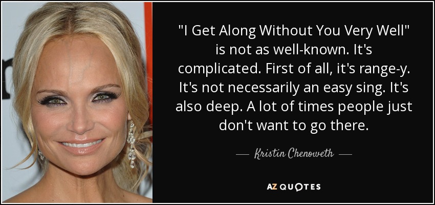 "I Get Along Without You Very Well" is not as well-known. It's complicated. First of all, it's range-y. It's not necessarily an easy sing. It's also deep. A lot of times people just don't want to go there.