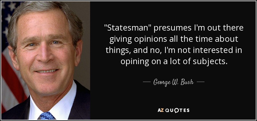 "Statesman" presumes I'm out there giving opinions all the time about things, and no, I'm not interested in opining on a lot of subjects.