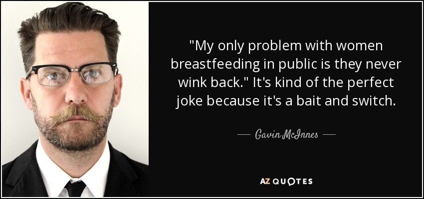 "My only problem with women breastfeeding in public is they never wink back." It's kind of the perfect joke because it's a bait and switch.