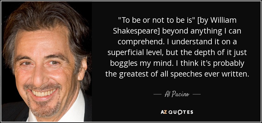 "To be or not to be is" [by William Shakespeare] beyond anything I can comprehend. I understand it on a superficial level, but the depth of it just boggles my mind. I think it's probably the greatest of all speeches ever written.
