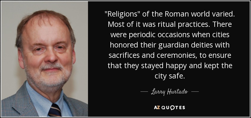 "Religions" of the Roman world varied. Most of it was ritual practices. There were periodic occasions when cities honored their guardian deities with sacrifices and ceremonies, to ensure that they stayed happy and kept the city safe.