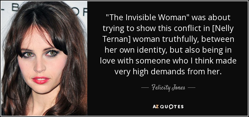 "The Invisible Woman" was about trying to show this conflict in [Nelly Ternan] woman truthfully, between her own identity, but also being in love with someone who I think made very high demands from her.