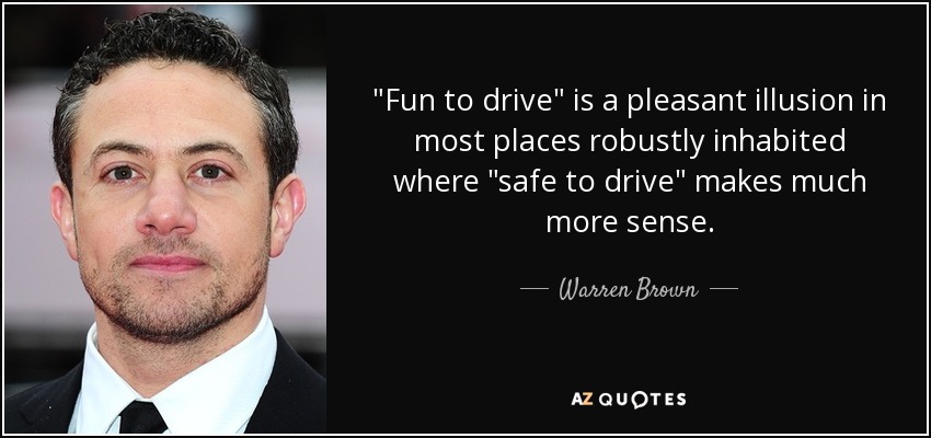 "Fun to drive" is a pleasant illusion in most places robustly inhabited where "safe to drive" makes much more sense.