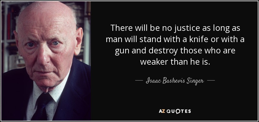 There will be no justice as long as man will stand with a knife or with a gun and destroy those who are weaker than he is.