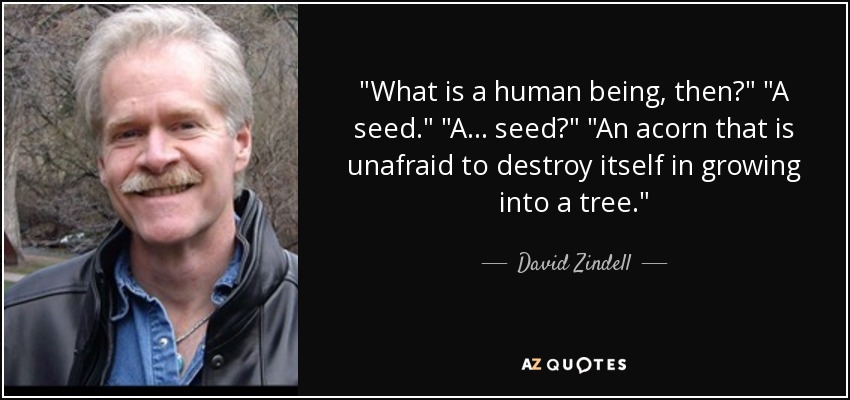"What is a human being, then?" "A seed." "A... seed?" "An acorn that is unafraid to destroy itself in growing into a tree."