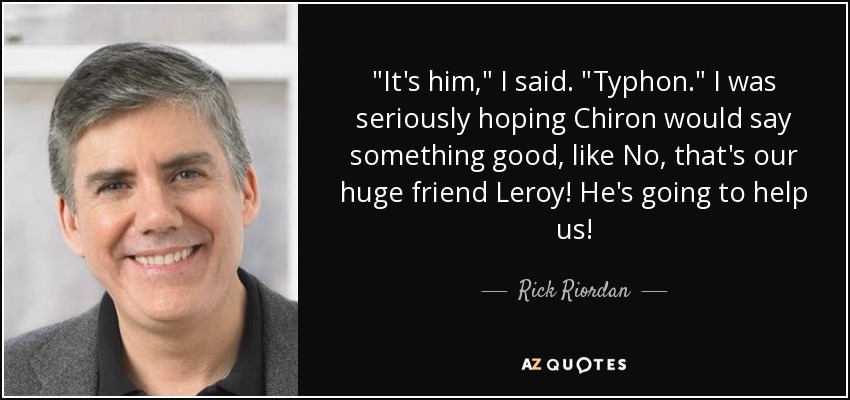 "It's him," I said. "Typhon." I was seriously hoping Chiron would say something good, like No, that's our huge friend Leroy! He's going to help us!