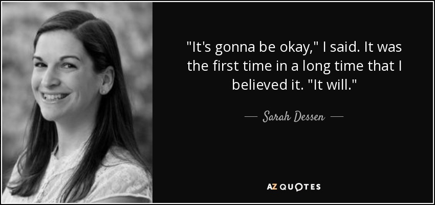 "It's gonna be okay," I said. It was the first time in a long time that I believed it. "It will."