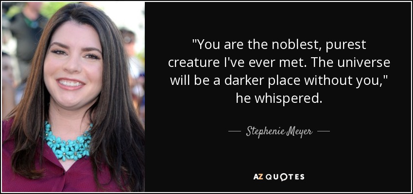 "You are the noblest, purest creature I've ever met. The universe will be a darker place without you," he whispered.