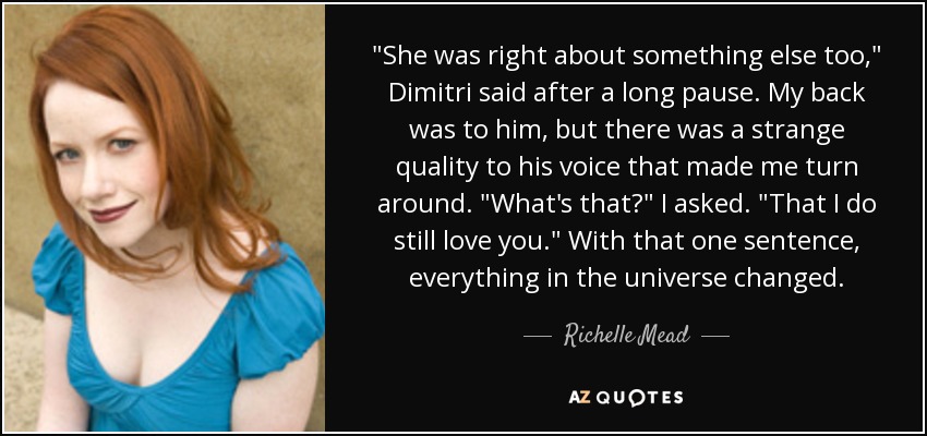 "She was right about something else too," Dimitri said after a long pause. My back was to him, but there was a strange quality to his voice that made me turn around. "What's that?" I asked. "That I do still love you." With that one sentence, everything in the universe changed.