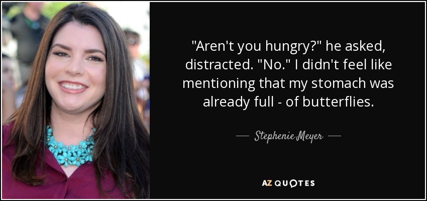 "Aren't you hungry?" he asked, distracted. "No." I didn't feel like mentioning that my stomach was already full - of butterflies.