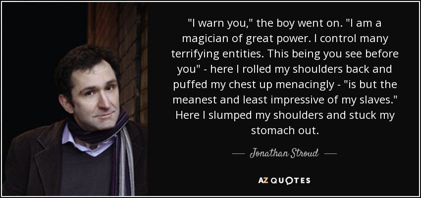 "I warn you," the boy went on. "I am a magician of great power. I control many terrifying entities. This being you see before you" - here I rolled my shoulders back and puffed my chest up menacingly - "is but the meanest and least impressive of my slaves." Here I slumped my shoulders and stuck my stomach out.