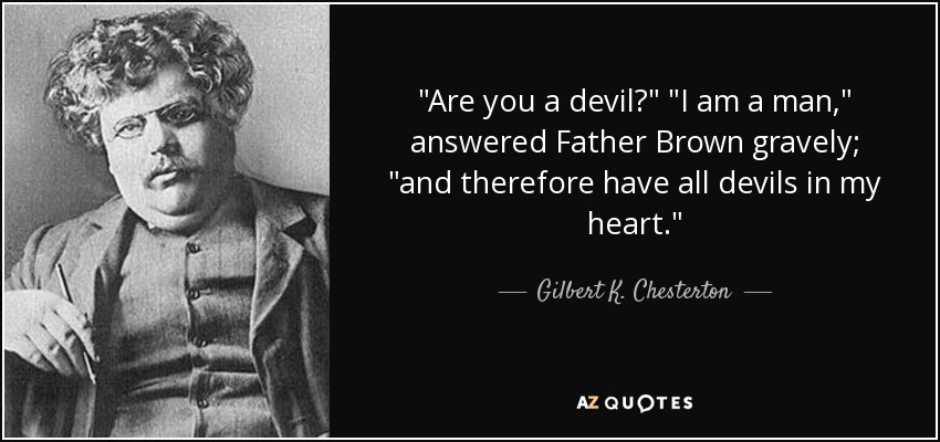"Are you a devil?" "I am a man," answered Father Brown gravely; "and therefore have all devils in my heart."