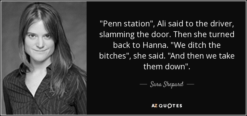 "Penn station", Ali said to the driver, slamming the door. Then she turned back to Hanna. "We ditch the bitches", she said. "And then we take them down".