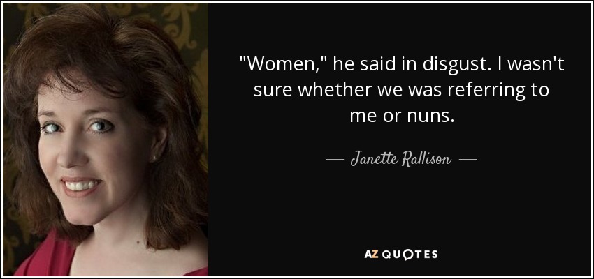 "Women," he said in disgust. I wasn't sure whether we was referring to me or nuns.