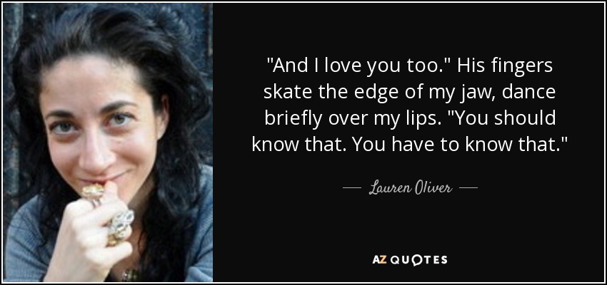"And I love you too." His fingers skate the edge of my jaw, dance briefly over my lips. "You should know that. You have to know that."