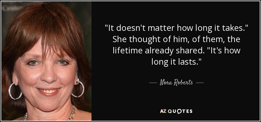 "It doesn't matter how long it takes." She thought of him, of them, the lifetime already shared. "It's how long it lasts."