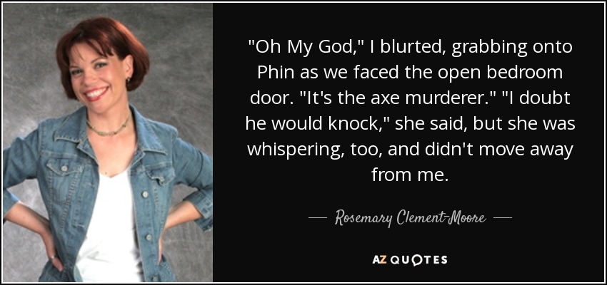 "Oh My God," I blurted, grabbing onto Phin as we faced the open bedroom door. "It's the axe murderer." "I doubt he would knock," she said, but she was whispering, too, and didn't move away from me.