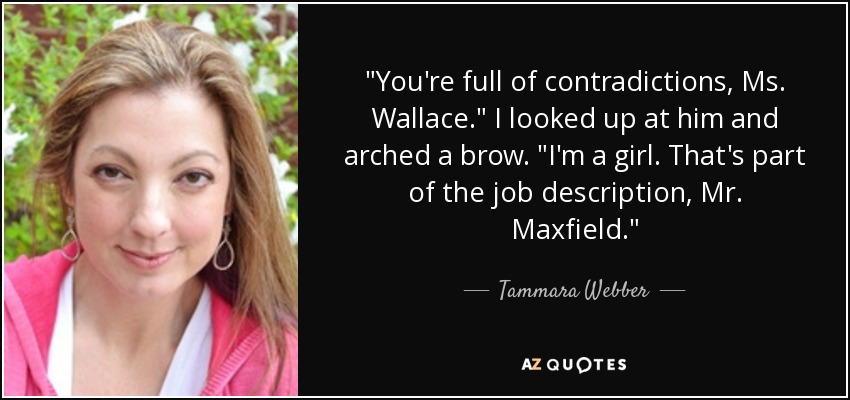 "You're full of contradictions, Ms. Wallace." I looked up at him and arched a brow. "I'm a girl. That's part of the job description, Mr. Maxfield."