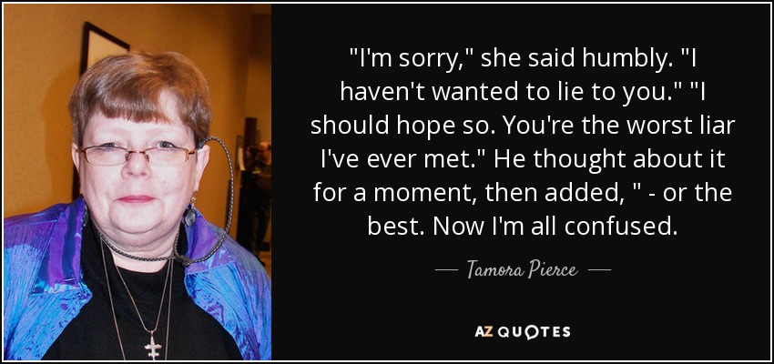 "I'm sorry," she said humbly. "I haven't wanted to lie to you." "I should hope so. You're the worst liar I've ever met." He thought about it for a moment, then added, " - or the best. Now I'm all confused.