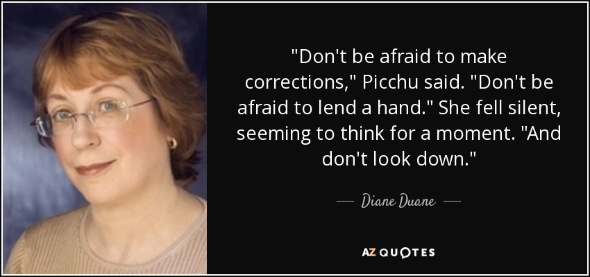 "Don't be afraid to make corrections," Picchu said. "Don't be afraid to lend a hand." She fell silent, seeming to think for a moment. "And don't look down."