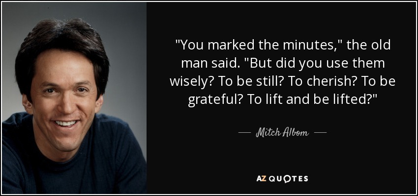 "You marked the minutes," the old man said. "But did you use them wisely? To be still? To cherish? To be grateful? To lift and be lifted?"
