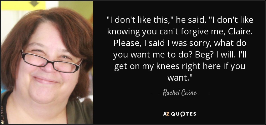 "I don't like this," he said. "I don't like knowing you can't forgive me, Claire. Please, I said I was sorry, what do you want me to do? Beg? I will. I'll get on my knees right here if you want."