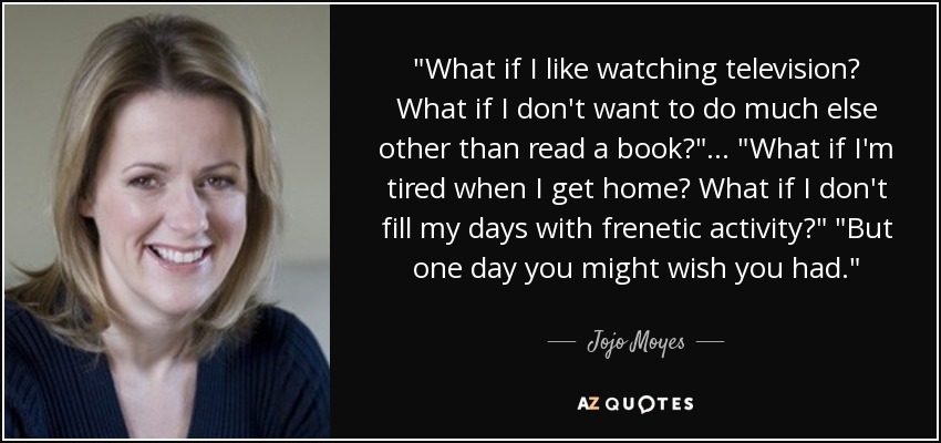 "What if I like watching television? What if I don't want to do much else other than read a book?"... "What if I'm tired when I get home? What if I don't fill my days with frenetic activity?" "But one day you might wish you had."