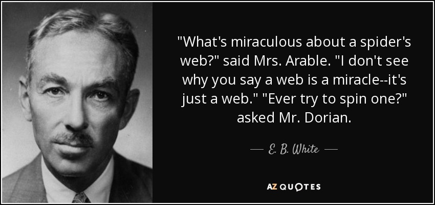 "What's miraculous about a spider's web?" said Mrs. Arable. "I don't see why you say a web is a miracle--it's just a web."