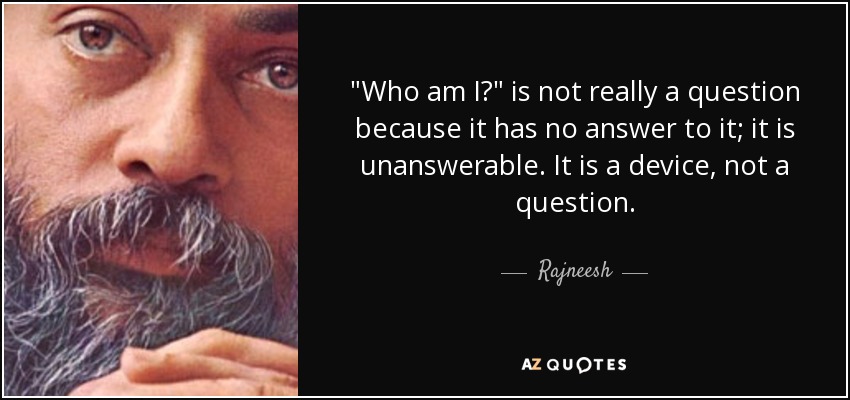 "Who am I?" is not really a question because it has no answer to it; it is unanswerable. It is a device, not a question.