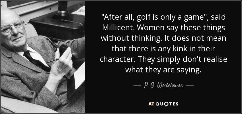 "After all, golf is only a game", said Millicent. Women say these things without thinking. It does not mean that there is any kink in their character. They simply don't realise what they are saying.