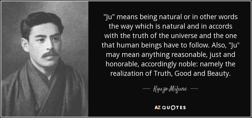 "Ju" means being natural or in other words the way which is natural and in accords with the truth of the universe and the one that human beings have to follow. Also, "Ju" may mean anything reasonable, just and honorable, accordingly noble: namely the realization of Truth , Good and Beauty.