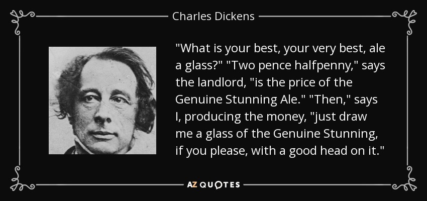 "What is your best, your very best, ale a glass?" "Two pence halfpenny," says the landlord, "is the price of the Genuine Stunning Ale." "Then," says I, producing the money, "just draw me a glass of the Genuine Stunning, if you please, with a good head on it."