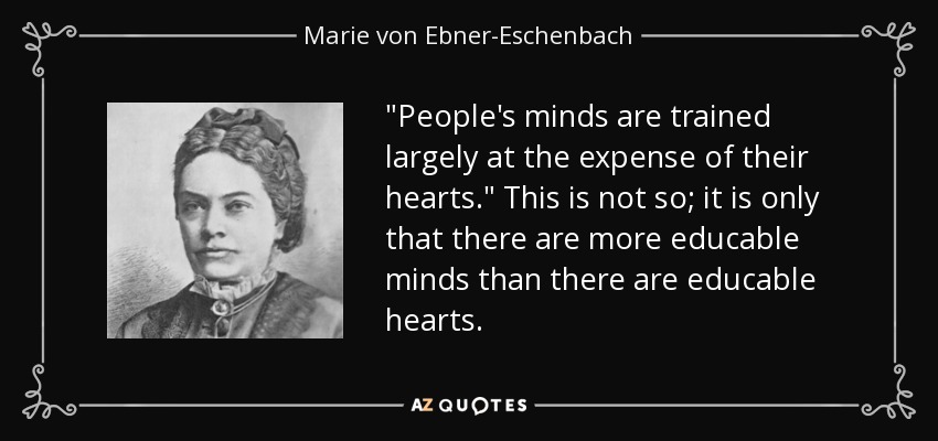 "People's minds are trained largely at the expense of their hearts." This is not so; it is only that there are more educable minds than there are educable hearts.