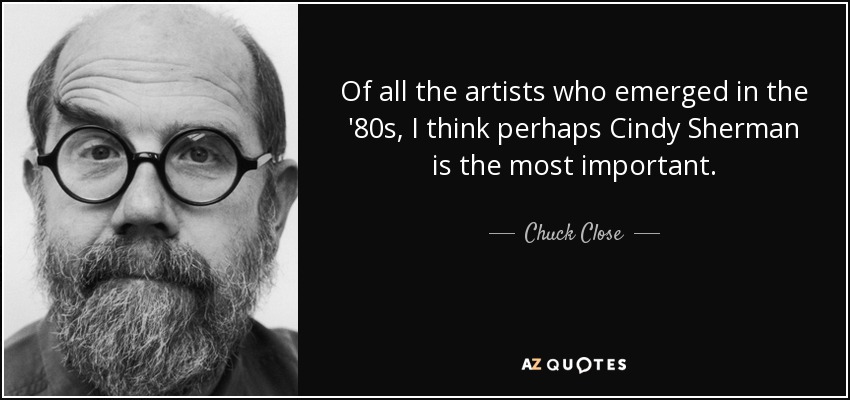 Of all the artists who emerged in the '80s, I think perhaps Cindy Sherman is the most important.