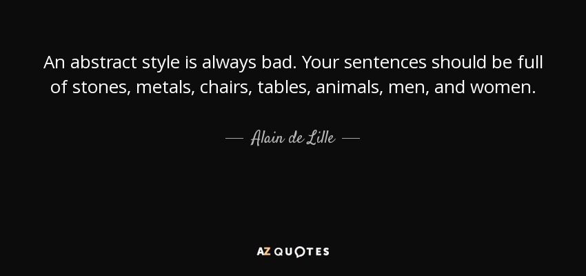 An abstract style is always bad. Your sentences should be full of stones, metals, chairs, tables, animals, men, and women.