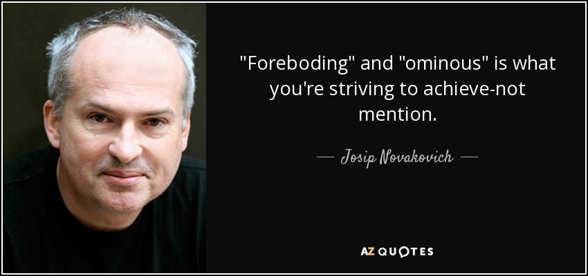 "Foreboding" and "ominous" is what you're striving to achieve-not mention.