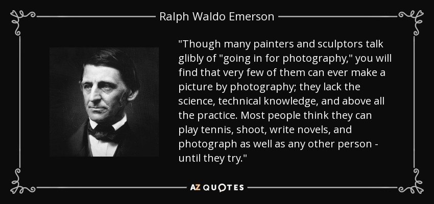 "Though many painters and sculptors talk glibly of "going in for photography," you will find that very few of them can ever make a picture by photography; they lack the science, technical knowledge, and above all the practice. Most people think they can play tennis, shoot, write novels, and photograph as well as any other person - until they try."