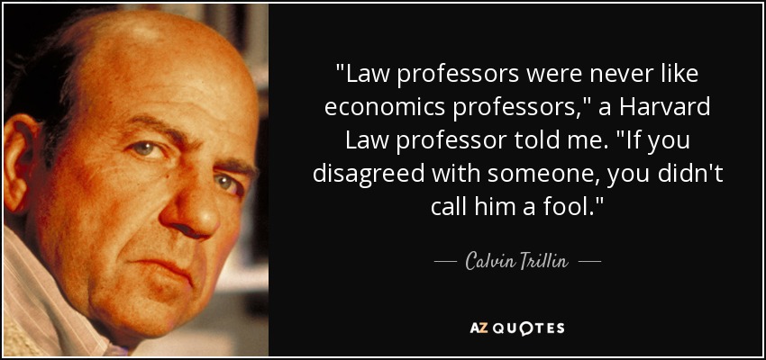 "Law professors were never like economics professors," a Harvard Law professor told me. "If you disagreed with someone, you didn't call him a fool."