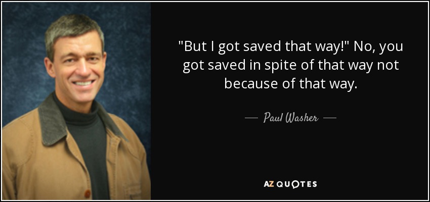 "But I got saved that way!" No, you got saved in spite of that way not because of that way.