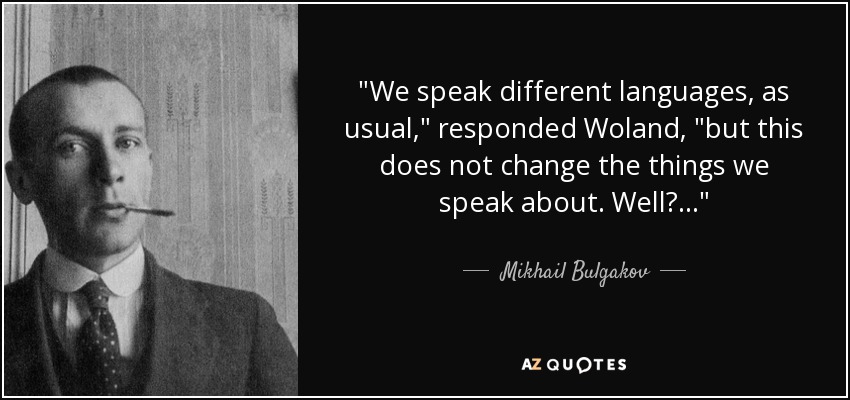 "We speak different languages, as usual," responded Woland, "but this does not change the things we speak about. Well?..."