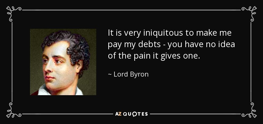 It is very iniquitous to make me pay my debts - you have no idea of the pain it gives one.