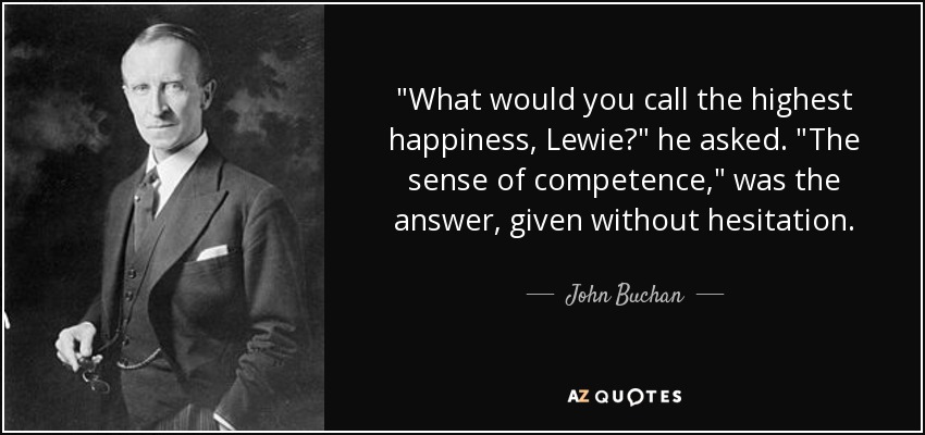 "What would you call the highest happiness, Lewie?" he asked. "The sense of competence," was the answer, given without hesitation.