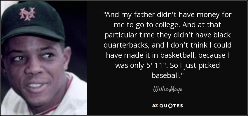"And my father didn't have money for me to go to college. And at that particular time they didn't have black quarterbacks, and I don't think I could have made it in basketball, because I was only 5′ 11". So I just picked baseball."