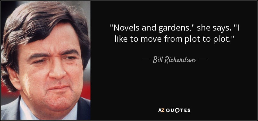 "Novels and gardens," she says. "I like to move from plot to plot."