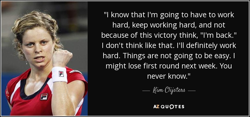 "I know that I'm going to have to work hard, keep working hard, and not because of this victory think, "I'm back." I don't think like that. I'll definitely work hard. Things are not going to be easy. I might lose first round next week. You never know."